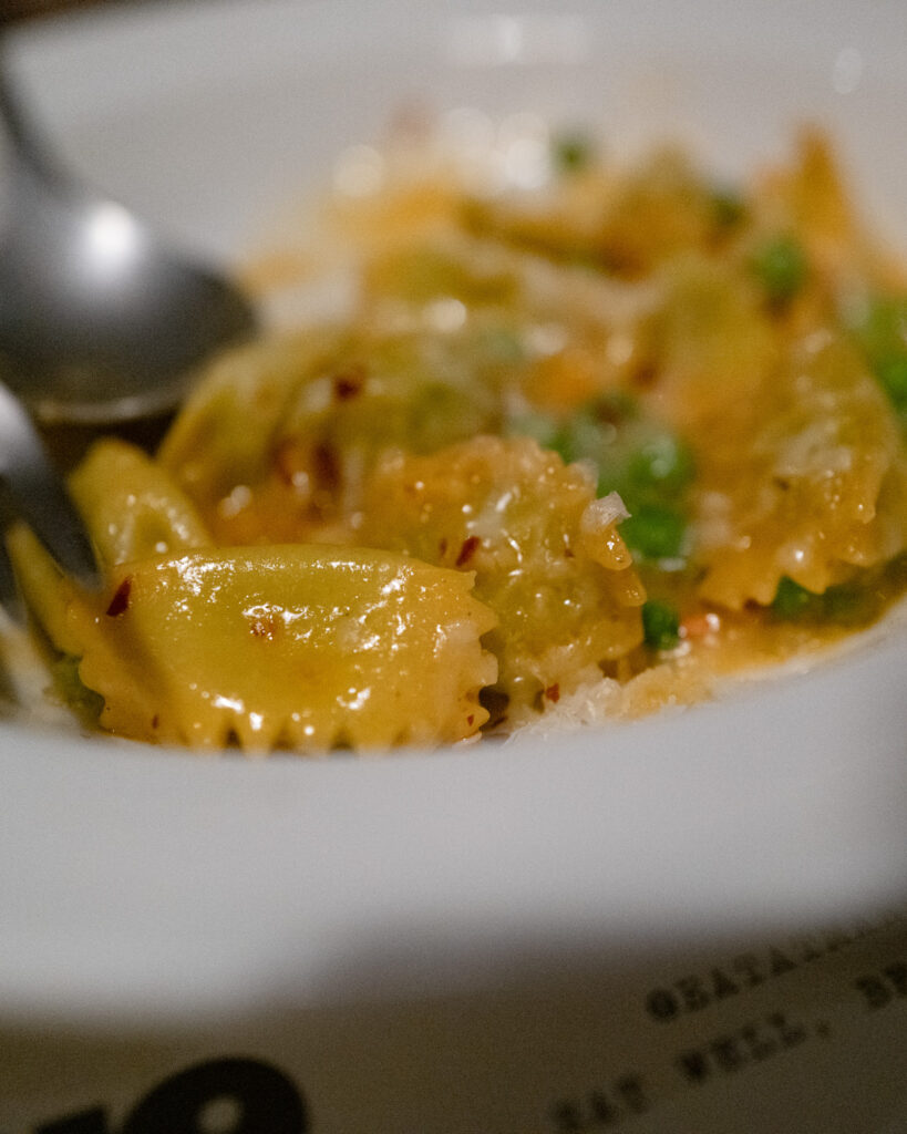 Agnolotti, sweet corn & calabrian chili — peak-summer energy when it’s on.